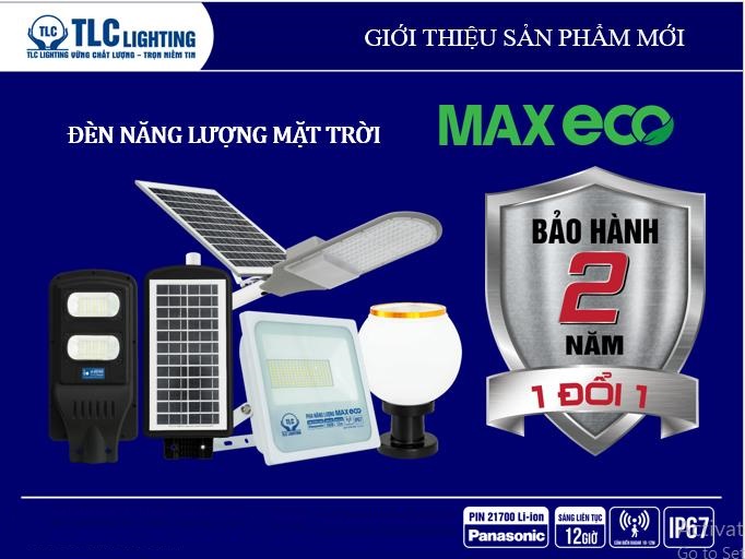 TLC LIGHTING ra mặt bộ Đèn năng lượng mặt trời Max eco gồm: Đèn pha năng lượng mặt trời, đèn đường năng lượng mặt trời và đèn trụ cổng năng lượng mặt trời với thiết kế sang trọng, tinh tế; nguyên liệu cao cấp nhôm nguyên khối bền đẹp, siêu chống nước IP67, siêu tiết kiệm điện. Đây là bộ sản phẩm cao cấp đáng tự hào của TLC Lighting.